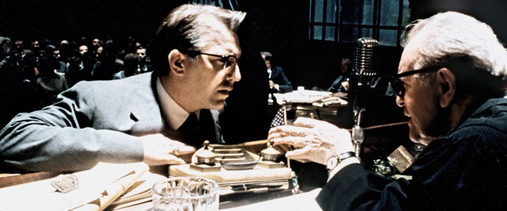 Perhaps most striking here is how the director drastically shifts his lighting of Garrison in realtime without cutting away. As if shooting the scene for theatre, Stone shows the audience both the passage of time and Garrison’s growing fear through moving shades of red light and darkness. The scene builds to a few quick frames of the famed Zapruder film and echoes of screams in Dealey Plaza before Garrison wakes up from a nightmare. Everything that comes afterwards speaks to Garrison’s waking up – to the lies, to the truth, and the awful burden now before him. In his words, he’s “been sleeping for three years,” and the rest of the film becomes his ardent effort to wake up the rest of the country.