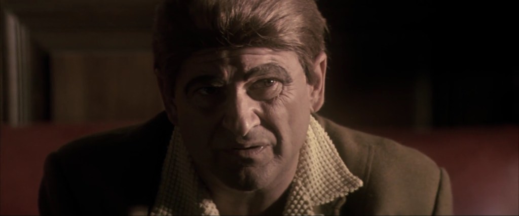 Courtroom procedurals often hinge more upon the intricacies of plot than the personal dilemmas of the protagonists. And plot details are of particular importance in JFK where one crime story purposely competes against another. Stone tackles this problem by extensively using flashbacks within the structure of the film. Sometimes these flashbacks are contextualized by dialogue that further clarifies their significance. This is most clearly seen in the numerous instances where Garrison questions witnesses in the first half of the film. But Stone creates the feel of a hidden story by inserting flashbacks within flashbacks or using flashbacks that directly contradict the dialogue of his characters. The use of flashbacks to both undermine lies and support truth are perhaps best seen in the case of the character of David Ferrie (Joe Pesci). Ferrie is first questioned early in the film and the numerous lies he tells are instantly exposed to the audience in quick flashbacks. When Garrison’s case goes public, and Ferrie comes clean in a paranoid rant inside a hotel room, the truth is revealed in a dizzying array of flashbacks supporting the character’s claim that the plot to kill Kennedy was “a riddle, wrapped in a mystery, inside an enigma”.